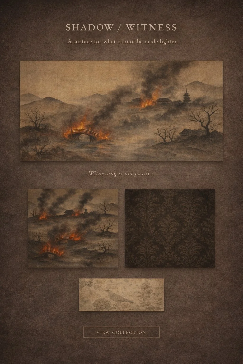 The designs to lean towards the macabre and are encourage to be used not as spectacle but as acknowledgment: that beauty and loss often share the same surface. Wrapped around an object, these papers become a gesture—an offering that says this as chosen, this was considered, this mattered.